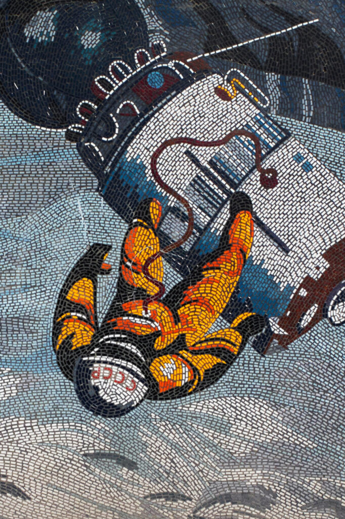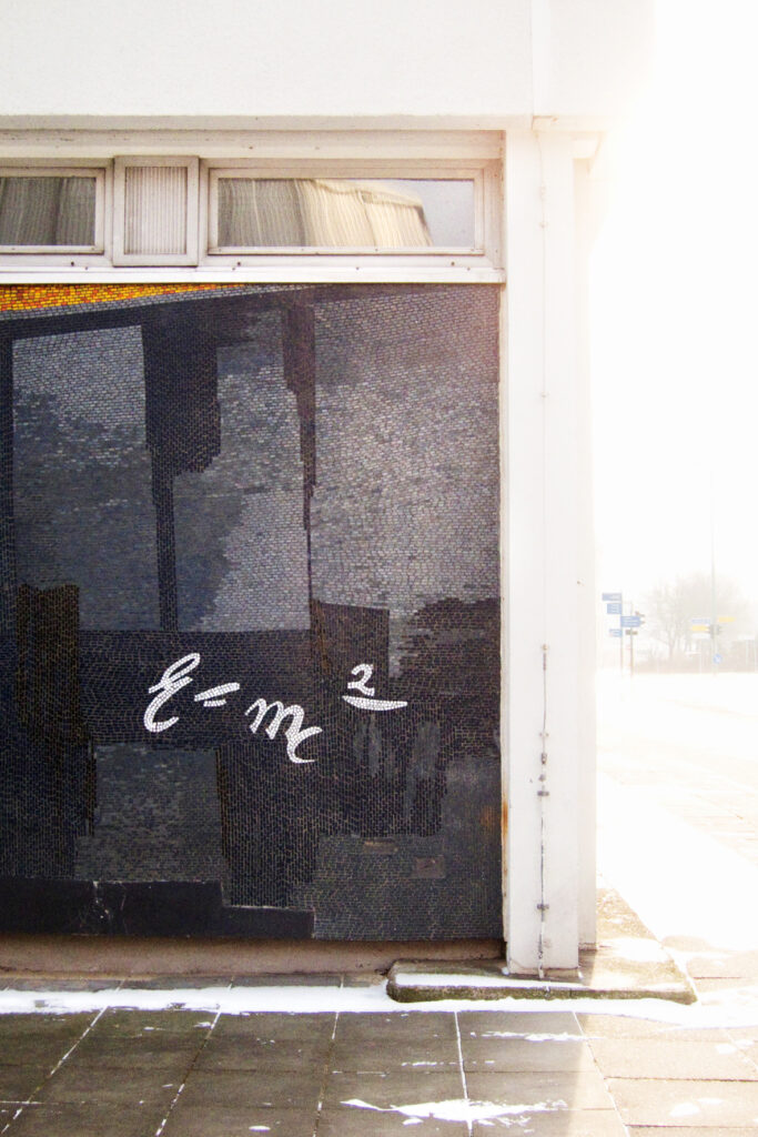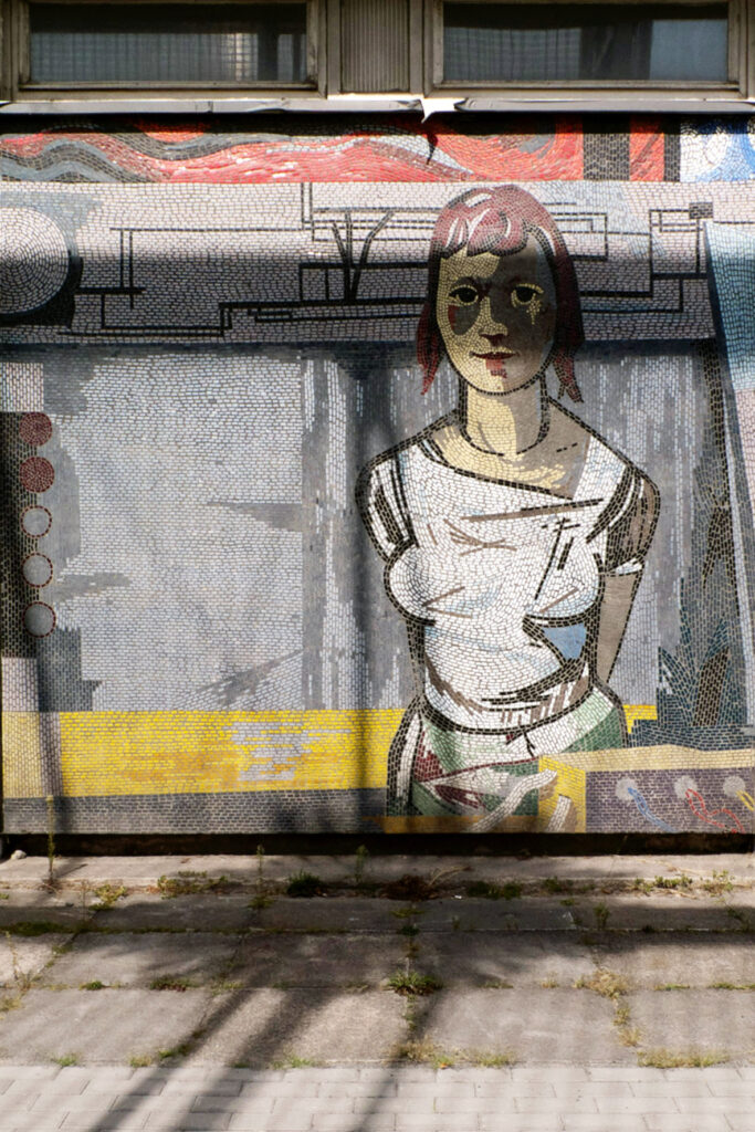 Photos from several series depicting the iconic Mosaik on the building´s façade are shown between September 1st and 21st 2025 at the Rechenzentrum cultural center in Potsdam.